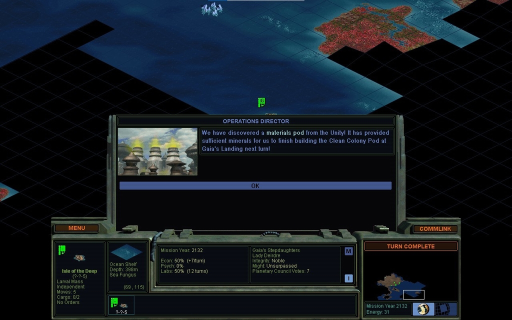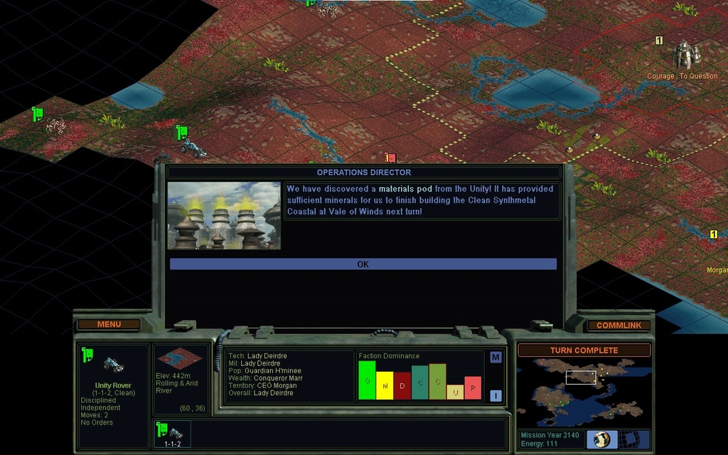 We shall verify that we do indeed see the Usurpers, up ahead.  And if that's them, we're going to go back to planting turnips.  We don't dislike Cha Dawn, but squabbling with the Usurpers will keep him a bit busy.  That will give us time to learn more about his intents.  And to take all the supply pods, which we are now quite addicted to.