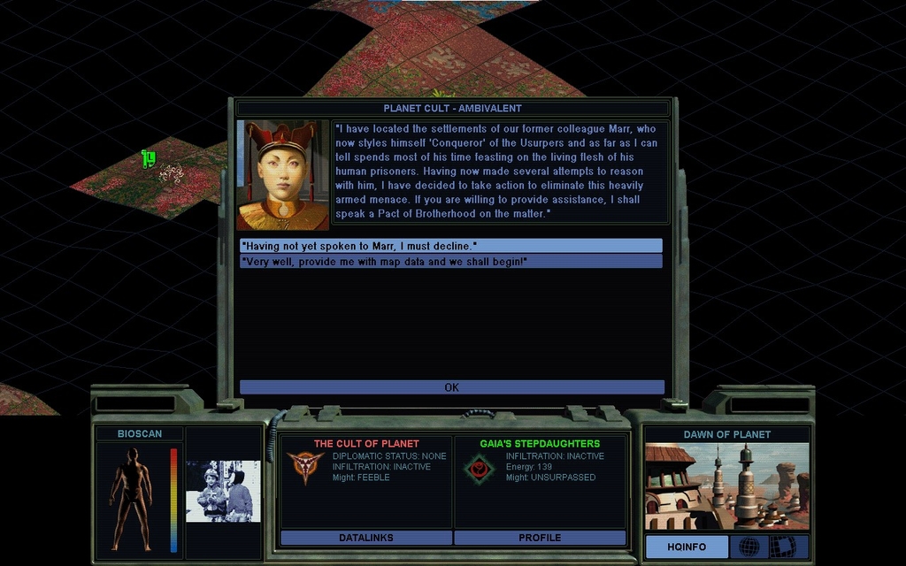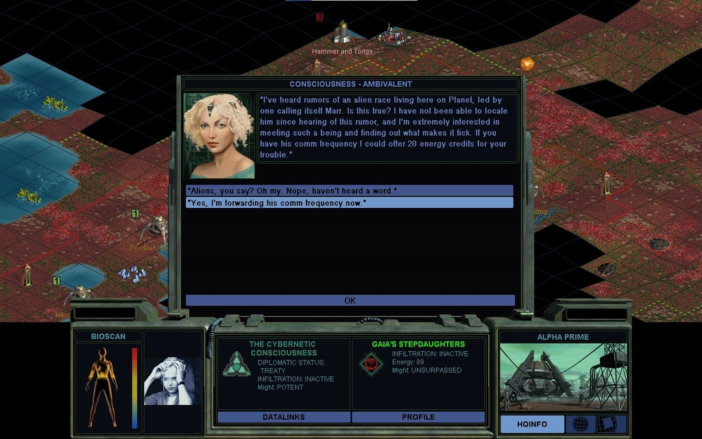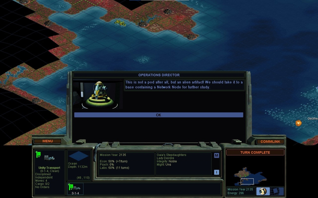 MY 2132.  The cyborgs meet us far afield, actually as we are about to exit their lands, which they should be happy of.  Let's face it, we took as many things off your land as we could.  You got in our way, we did what we had to do, and wanted to do.  We won't tell you any of that.  It's poor diplomatic form.  But we regret nothing.  Even now, one fat shiny artifact arrives safely home with us.