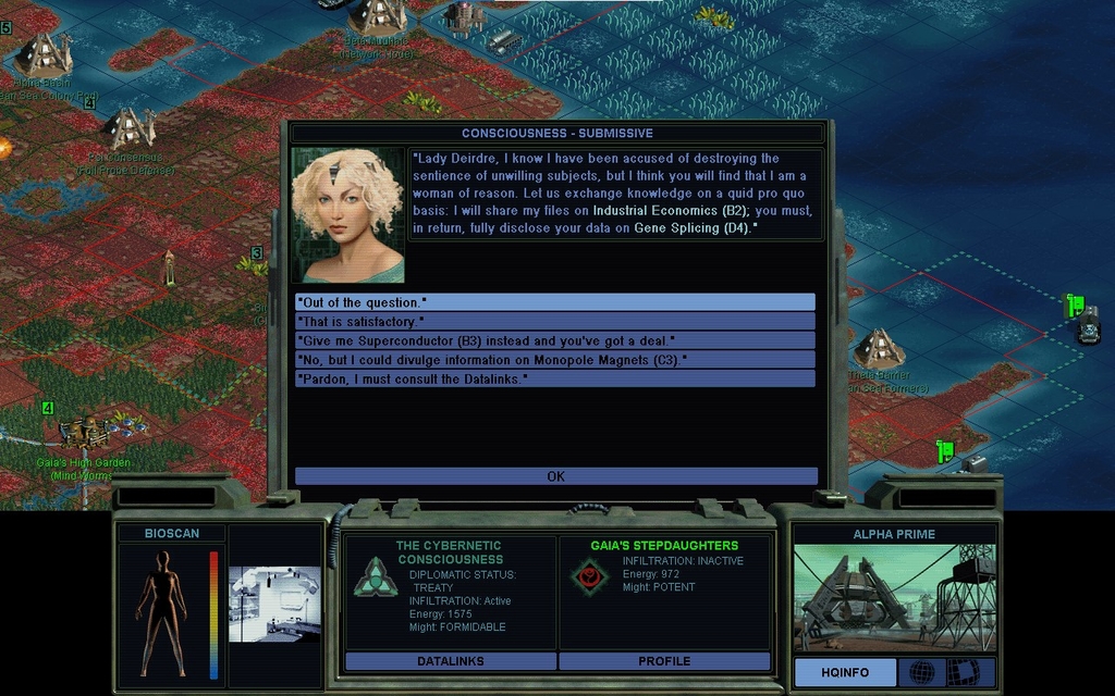 I stand corrected.  Cha Dawn, welcome to the Green revolution!  And with all your mindworms mucking about, we believe you actually mean it.  I suppose we will have to back his play after all.  Domai is remote; he will tire of that war soon enough.  Meanwhile, we already do have mindworms in his backyard, only because we wanted the supply pods.