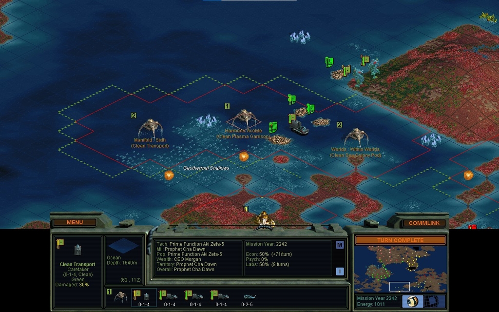 MY 2233.  It has been difficult to sail a probe team past the strategic Cybernetic sea base.  It is the site of never ending conflict, and any lone team will also be expelled by the cyborgs themselves.  They have also occasionally attacked our teams despite no hostile intent on our part.  We managed to get 1 team through but we do not care to be in this crossfire any longer.