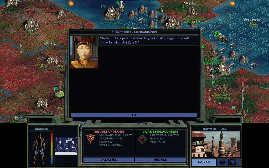 In a joint Cult operation, we seize another Morganic city.  We would have been happy to let the Cult have it, but we do admit, our immunity to probes makes it easier to hold a front.