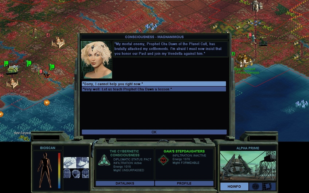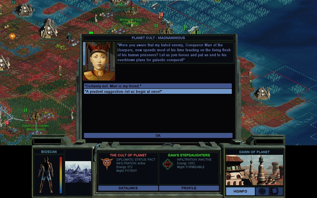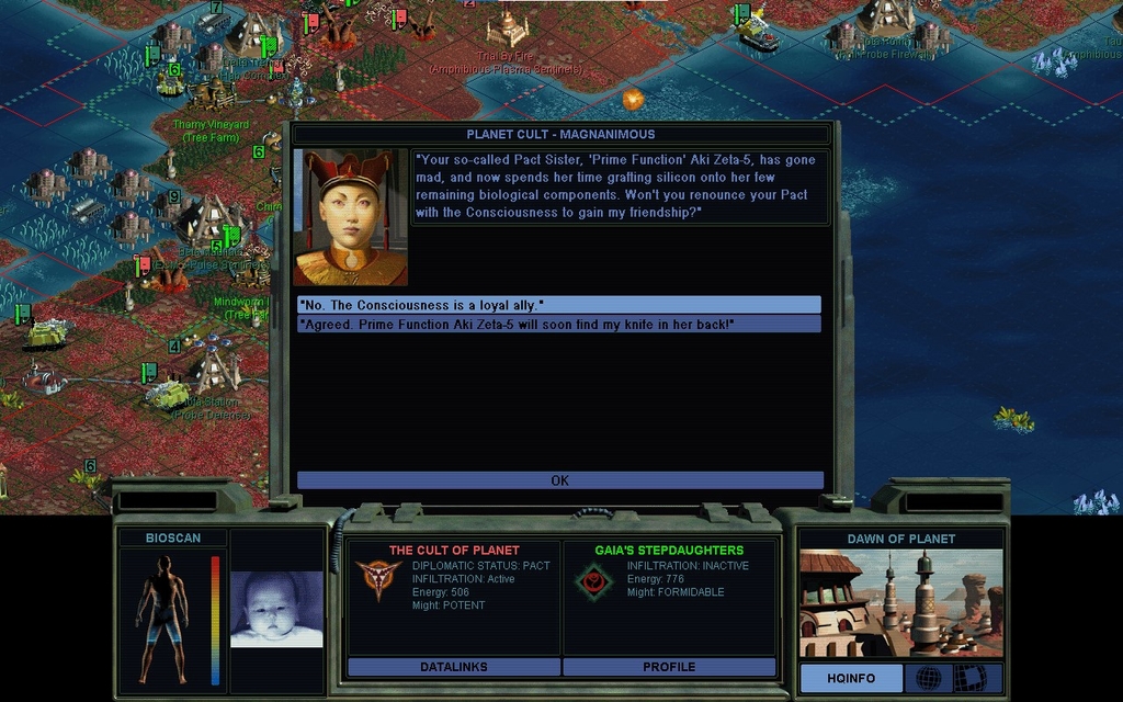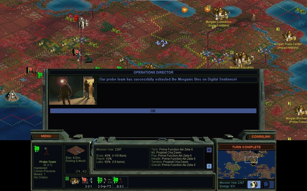 In a joint Cult operation, we seize another Morganic city.  We would have been happy to let the Cult have it, but we do admit, our immunity to probes makes it easier to hold a front.