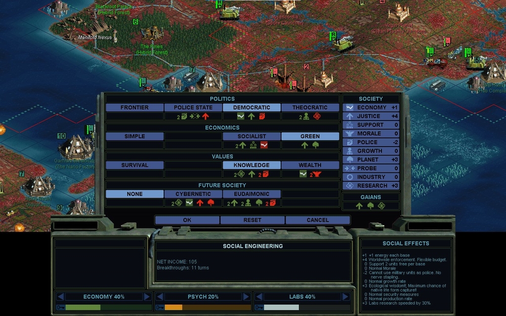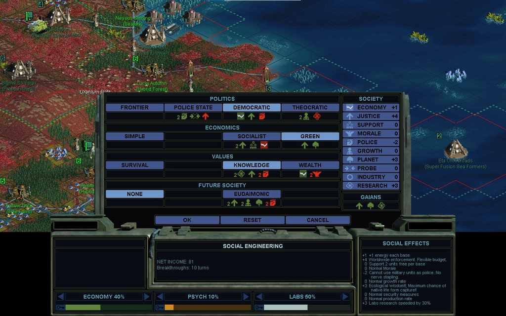 A Eudaimonic society would please Cha Dawn, alienate Aki, and anger our citizens due to all the combat mindworms in the field.  It's a bad idea at this time.  We'll stick to present society.