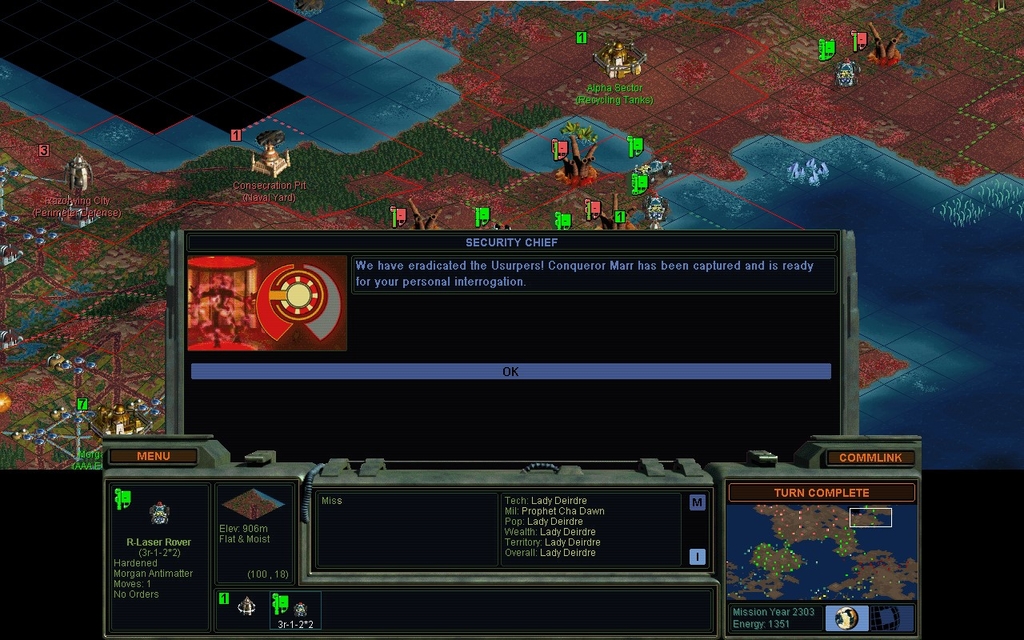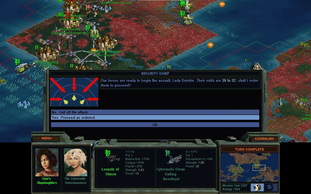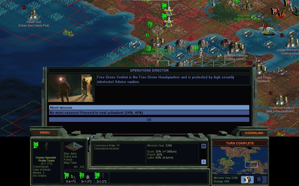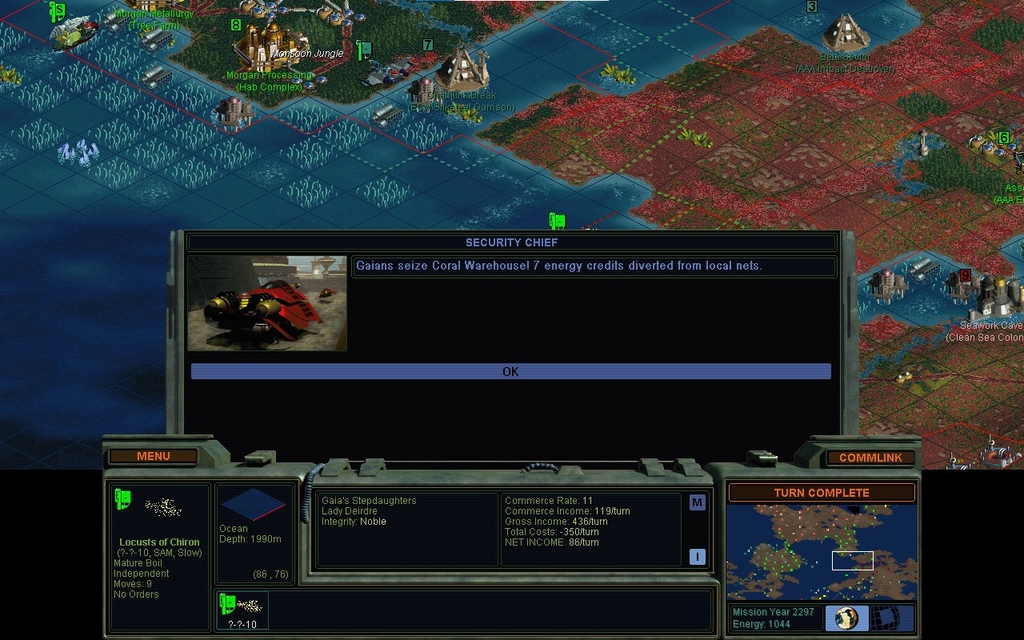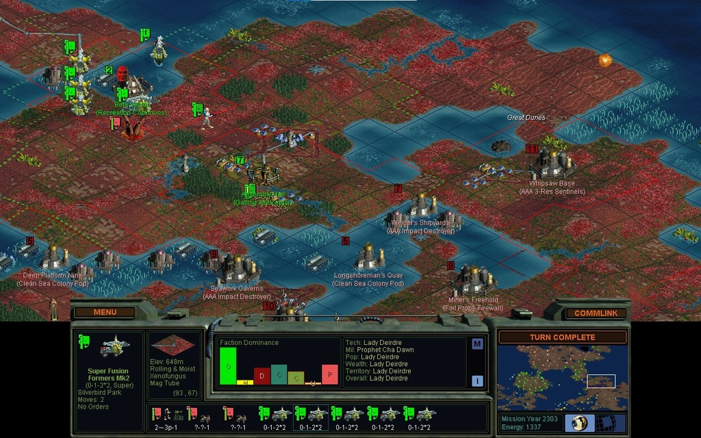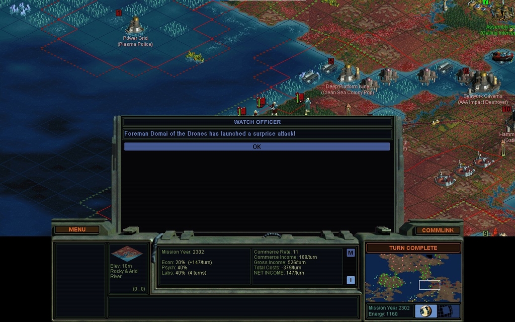 MY 2300.  We're not ready for the cyborgs to capitulate, as we have a number of additional secret project cities to take from them.  A surprising number of them are sea bases.  We've realized that our sealurks are probably the easiest way to clean out the oceans, but we have to build them.