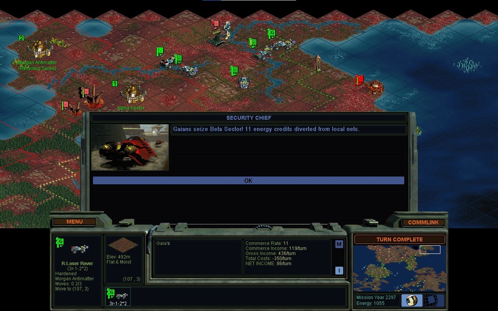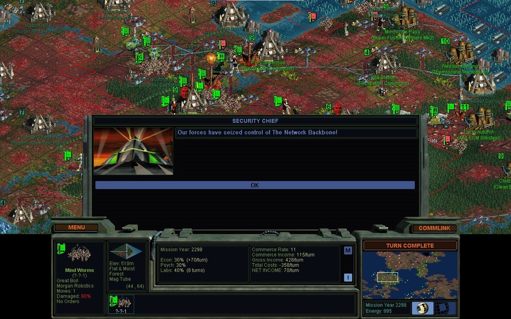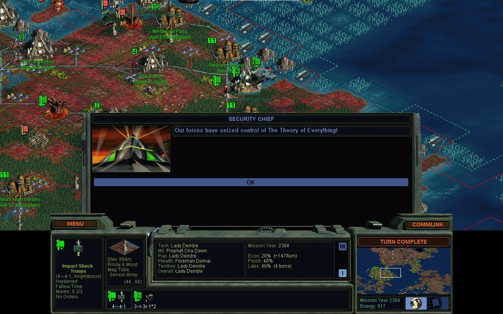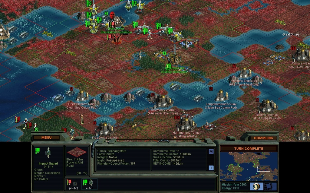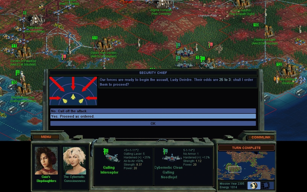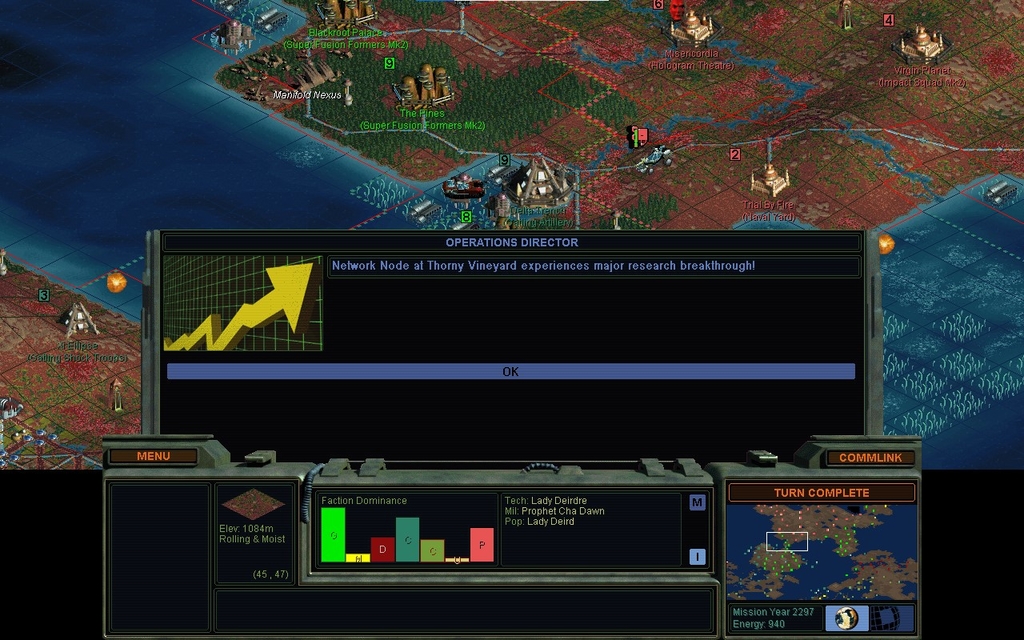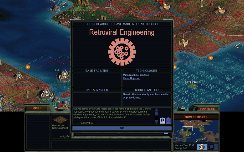 MY 2300.  We're not ready for the cyborgs to capitulate, as we have a number of additional secret project cities to take from them.  A surprising number of them are sea bases.  We've realized that our sealurks are probably the easiest way to clean out the oceans, but we have to build them.