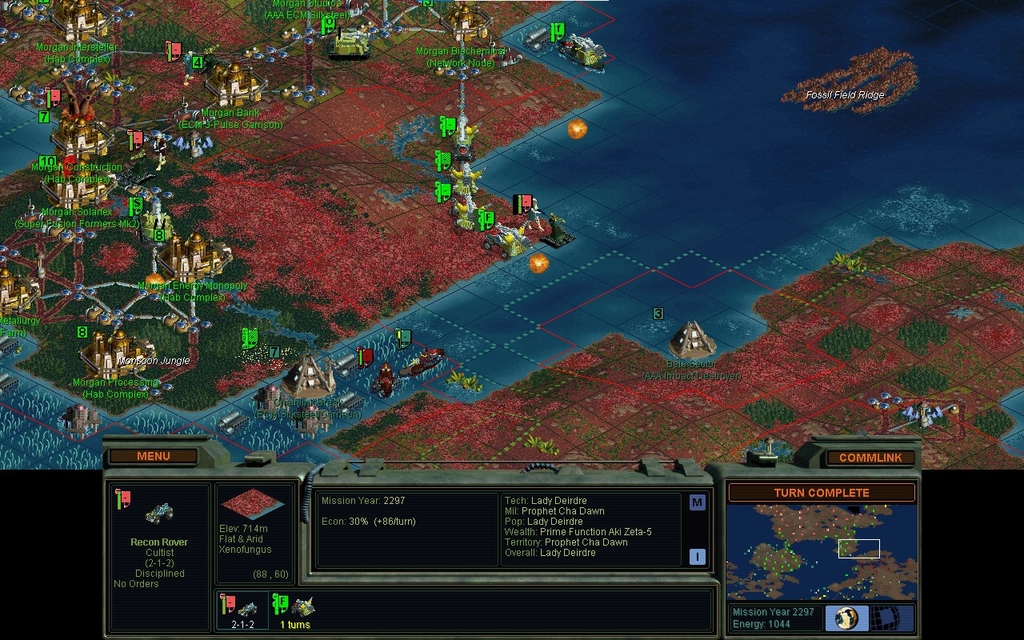 The rail to Alpha Prime is open, but the city is backed by a Sensor Array on top of Mount Planet.  Presently we cannot access it.  It is also best to have fully healed mindworms for the assault.  We've swept the fungus on the western flank clean of enemies.  Their most dangerous units tend to be artillery pieces, which tend to destroy our own.  All of ours are donated by Cha Dawn.  They accomplish only limited objectives, such as wounding speeders and mindworms and blowing up Sensor Arrays.