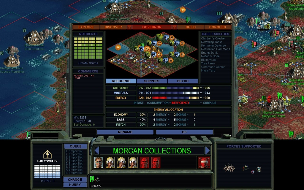 Morgan still has an enclave at the south pole.  How he managed to get there, and why these cities have survived so long, is a mystery.  He's very much at war with the cyborgs, who seemingly could take them at a whim, if only they had such a whim.  Morgan is oddly allied with the anti-capitalist Domai, but the latter has provided no meaningful material support.  Even the nearby Caretakers want Morgan's head.  These cities shall remain a museum curiosity, until such a time as we're ready to accept Morgan's formal surrender.