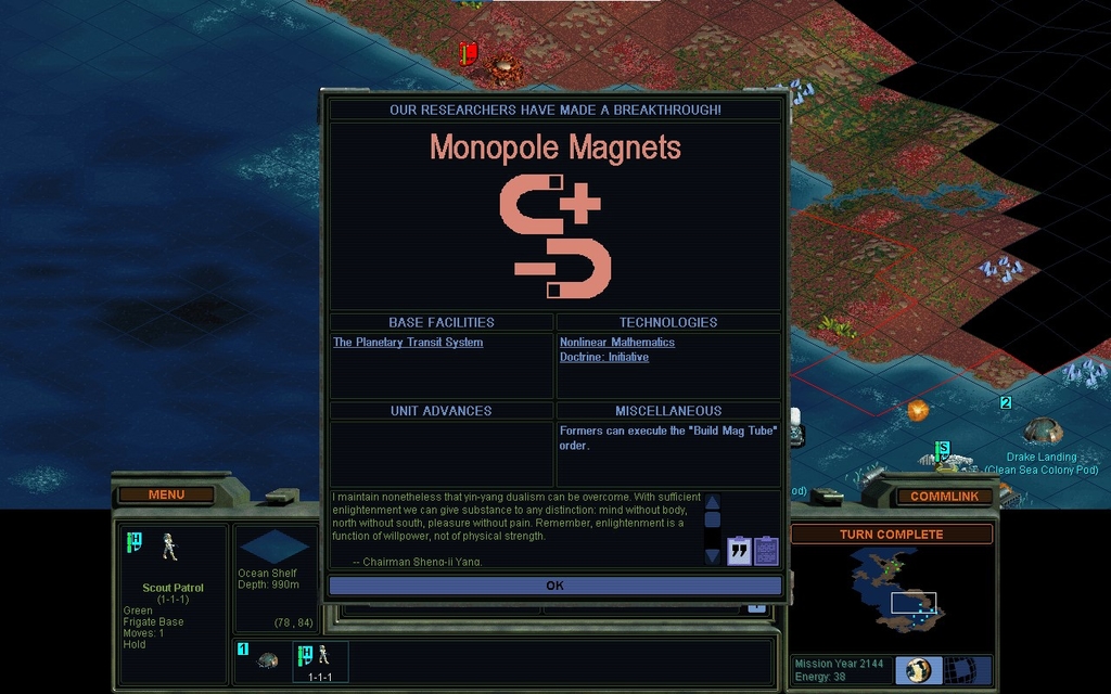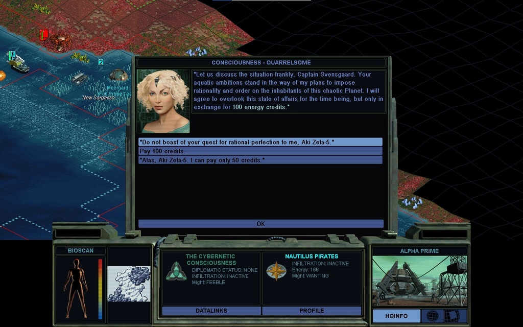 When both of them hate you, who do you slug at?  Or do you just flee?  I don't have the moves to flee.  They can tag me if they really want to.  Well, at least the University can.  I can actually get away from the Cyborg ship, which does have a higher PROBE rating, and reduced mind control costs.  Not reduced compared to the stock binary, everything is 2x more expensive.  Reduced compared to that new threshold of cost.  The Cyborgs, Hive, and Data Angels are the probe enhanced factions of my mod.