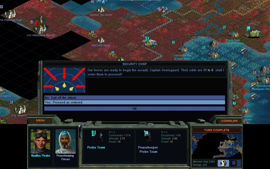 MY 2212.  I find myself wondering what Morgan is doing for me.  He says he won the war already!  I don't see a lot of U.N. cities with "Morganic" on them, Morgan.  He doesn't trade or give me any tech either.  Says he's busy working on the Hunter-Seeker Algorithm.