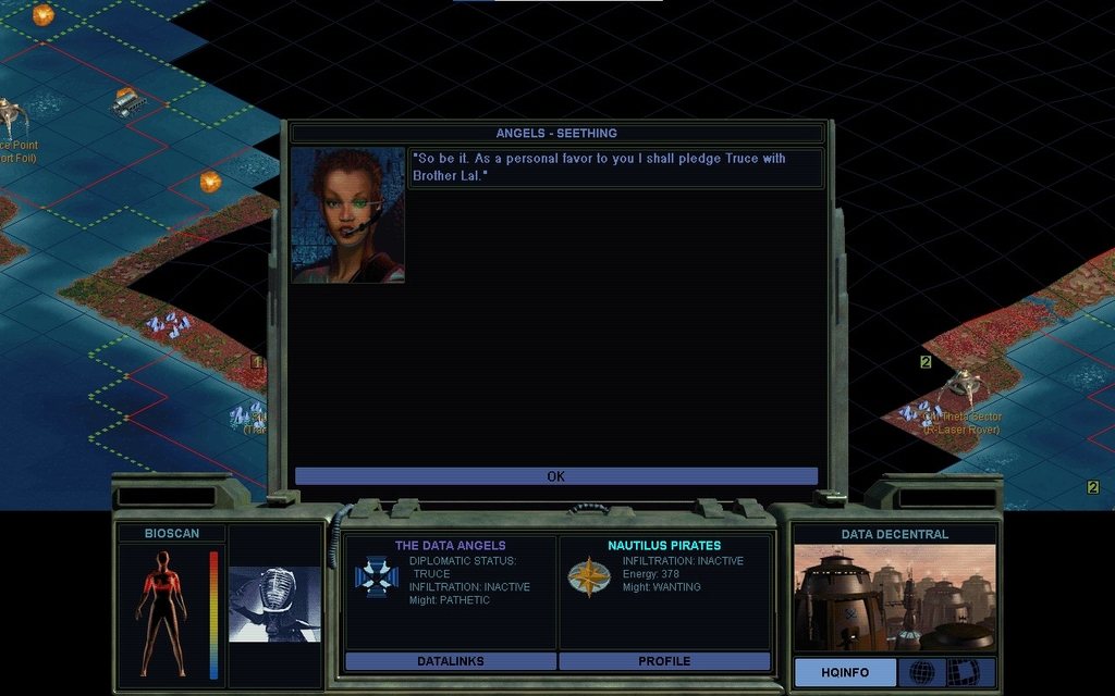 More carping about Sparta.  I don't care, and I've got my own problems.  If you wanted more concern, you could have kept your comm open previously.  Won't trade a tech, won't sign a Treaty.  She buggers off.
