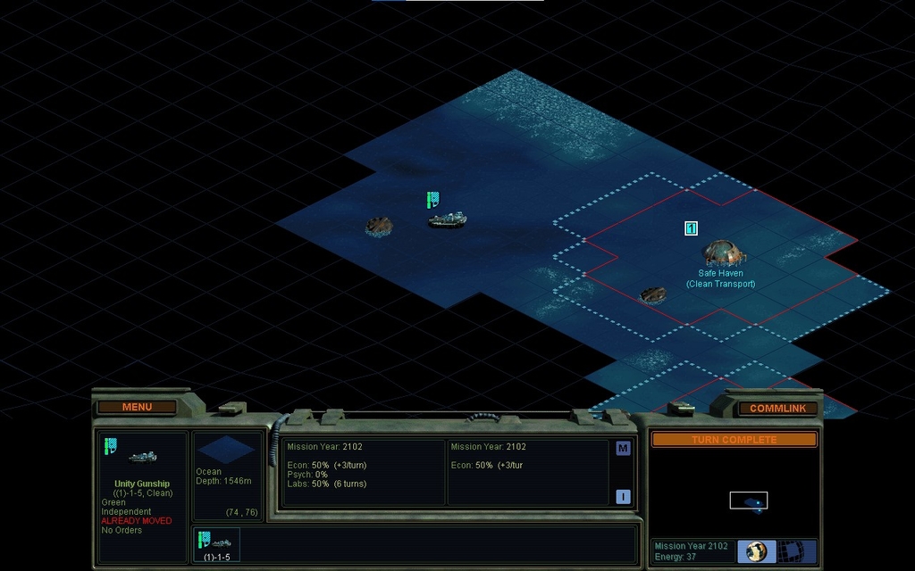 MY .  The relevant base went back down to size 1, so I can't complete a Clean Sea Colony Pod here anymore.  Need something else to complete.  "A" is for armored.  In principle, I could cash such a unit in for more minerals.  In practice, I never do so.  I know it's an exploit and I'm not that big on pushing such exploits to the hilt.  I nevertheless will tend to design the most expensive units possible to completion scum.  I'm not bothering with Armored Sea Colony Pods because I know I'll just settle them anyways and not cash them in, so what's the point.  Worth mentioning though.