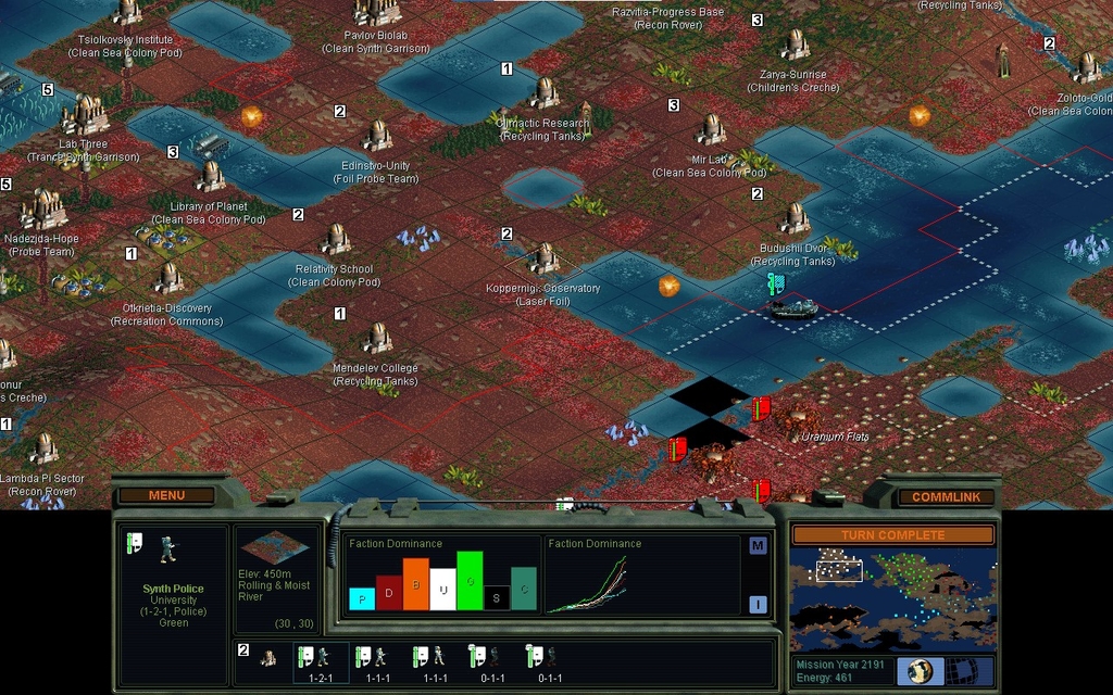 Once again no Aliens to bother us.  Cult of Planet makes its debut.  To be irritated further by Spartans, Cyborgs, Free Drones, Believers, and the University.  Rather similar to last game.  Cult instead of Gaians, that's the only change.