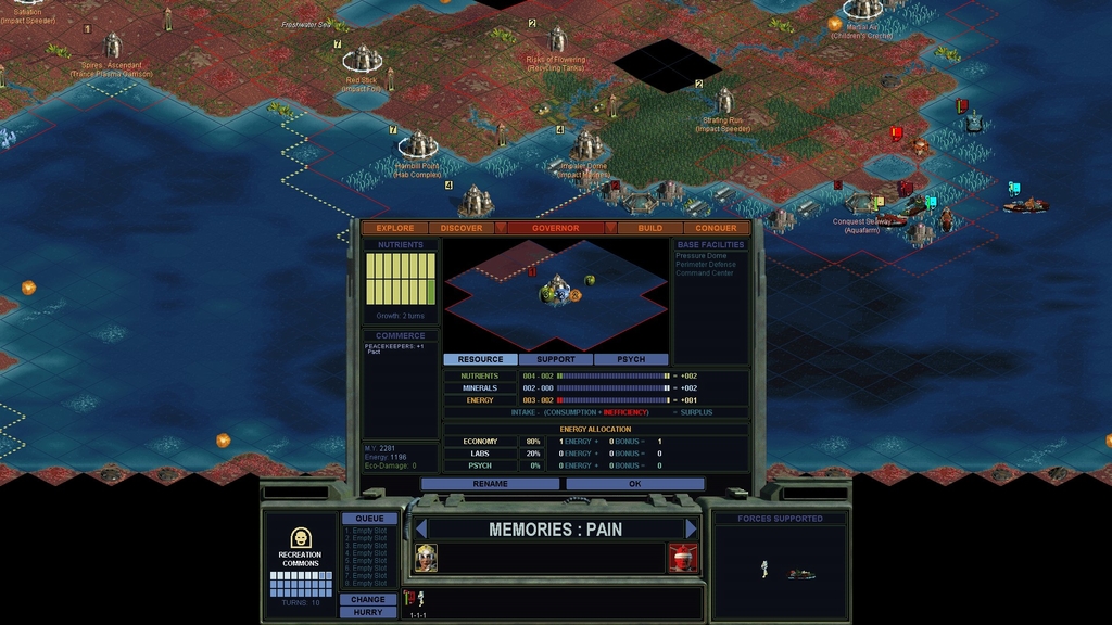 I mind controlled a sea base from the Pirates.  2 of the captured ships were these pathetic early synthmetal designs.  They were specific to the Pirates as they had the Marine designation.  I had way too many units to support in the captured base, so I took a nearby Usurper base, to end their willingness to make war on me.  That would leave me a free hand to deal with the Pirates, and hopefully keep the Usurpers from stealing from me for a bit.  I wasn't worried about them mind controlling my sea bases, because I had +3 PROBE, but I didn't have enough foil probe teams to cover the bases at the moment.